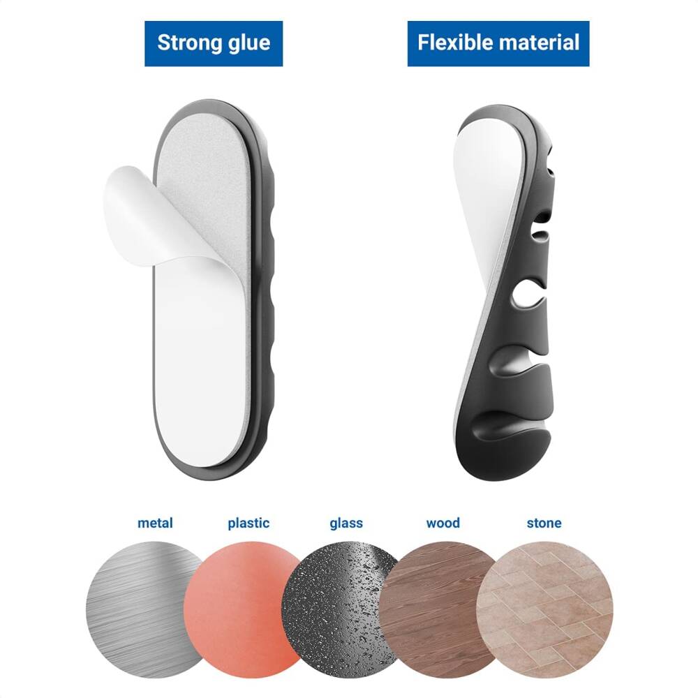 Bu kompakt kablo tutucular, masa üstü ve TV arkası gibi alanlarda kablo karmaşasına son verir. Her biri 5 kablo taşıma kapasitesine sahip olup düzenli ve erişilebilir bir ortam oluşturur. Alt kısmındaki güçlü yapışkan sayesinde herhangi bir düz yüzeye saniyeler içinde monte edilir. Delme veya vida gerektirmez. Çıkardığınızda iz bırakmaz. Modern siyah tasarımı sayesinde hem ev hem de ofis ortamlarına estetik uyum sağlar. USB, HDMI, şarj kablosu, kulaklık, mouse kablosu, klavye kablosu gibi her türlü kabloyu sabitlemek için uygundur.