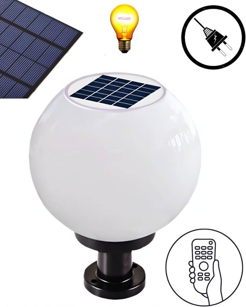 Kyrotech Set Üstü KÜRE Solar LED, Bahçe Lambası 60W, Güneş Enerjili+220V Elektrikli Hibrit, E27 Duy, Fotoselli, Uzaktan Kumandalı, 3 Modlu Işık, IP65 Su Geçirmez | Uzun Ömürlü Bahçe Aydınlatma Armatürü