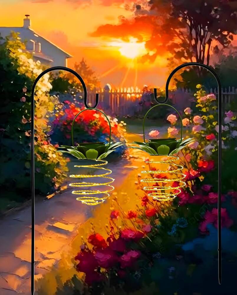 Bahçenizi veya verandanızı güneş enerjili LED ışıklar ile aydınlatarak eşsiz bir görünüm kazandırın. Bu asılabilir fener süsü, 1,15 metre uzunluğundaki metal askı sayesinde istediğiniz yere kolayca yerleştirilebilir. Sarmal şeklindeki LED ışıklar, ortadaki yeşil bitki desenli metal kap etrafında dönerek sıra dışı bir görünüm sunar. Gündüz güneş ışığını depoluyan solar paneller sayesinde gece boyunca otomatik olarak aydınlanır.
